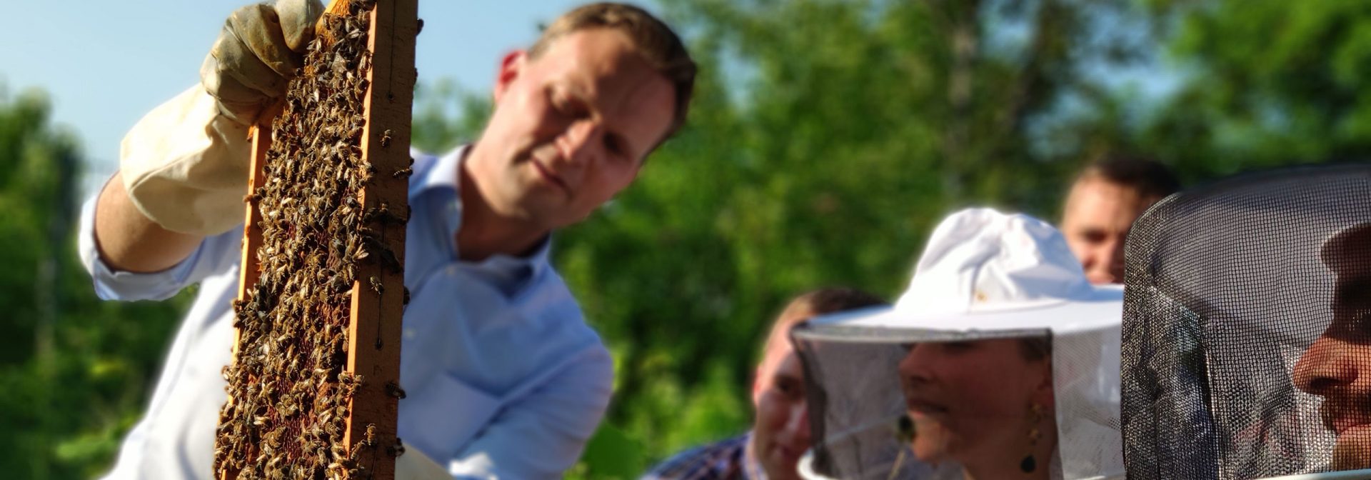 Mandref Bortenschläger von BMW Motorrad kümmert sich um fünf Bienenvölker mit über 500.000 Bienen, die er in den letzten Jahren auf einem abgezäunten Gelände der BMW Group angesiedelt hat. Jährlich erntet er etwa 40 Kilogramm besten regionalen Honig. Diese Menge könnte zwar größer sein, aber einen Großteil des süßen Nektars belässt er den Bienen als Wintervorrat. Den geernteten Honig verkauft Mandref an seine Kollegen und andere Honigliebhaber.