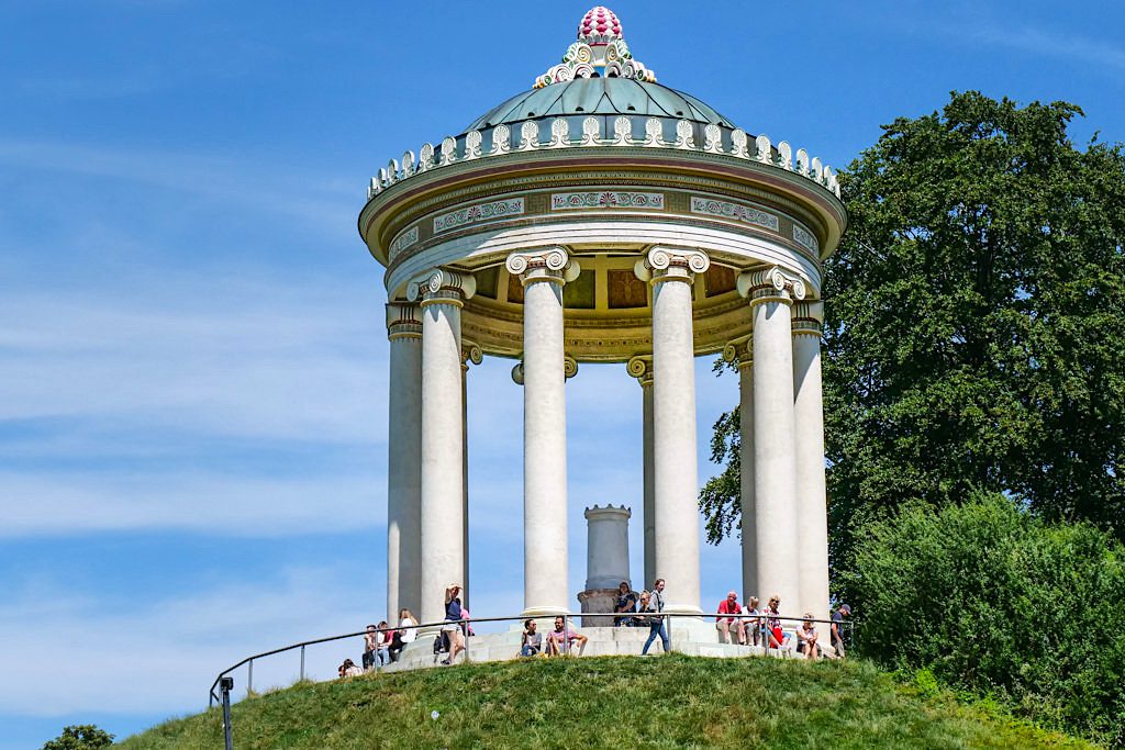 - Наслаждайтесь панорамным видом на парк и город с постройки Monopteros. Этот небольшой круглый храм, исполненный в греческом стиле, стоит на искусственно созданном холме высотой 15 метров. Крыша храма поддерживается столбами. Во время снежных зим на склонах возле Monopteros отважные авантюристы катаются на санях, хотя и официально это запрещено. Monopteros был создан по указанию короля Людвига I Баварского в честь курфюрста Карла Теодора и короля Максимилиана I.