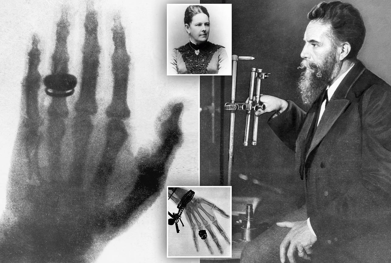 В 1888 Рентген стал профессором в Вюрцбургском университете. В 1894 — ректором. 8 ноября 1895 года совершил свое величайшее открытие — рентгеновские лучи. Как подтверждение, сфотографировал руку жены так, что было хорошо видно кольцо и кости.