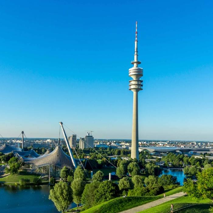Олімпійська вежа («Олімпіатурм») заввишки 291 м дає можливість насолодитися панорамою міста. На висоті 190 м розміщується оглядовий майданчик, звідки відкриваються найкращі краєвиди на баварські Альпи. На висоті 182 м ви натрапите на обертовий ресторан на 230 гостей. «Олімпіатурм» водночас слугує телевежею;